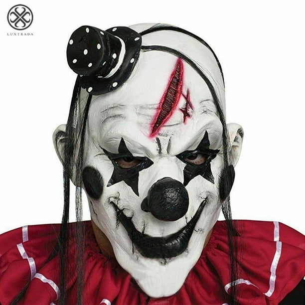 Scary Clown Mask Wig Halloween Horror Latex Bloody Face It Fancy