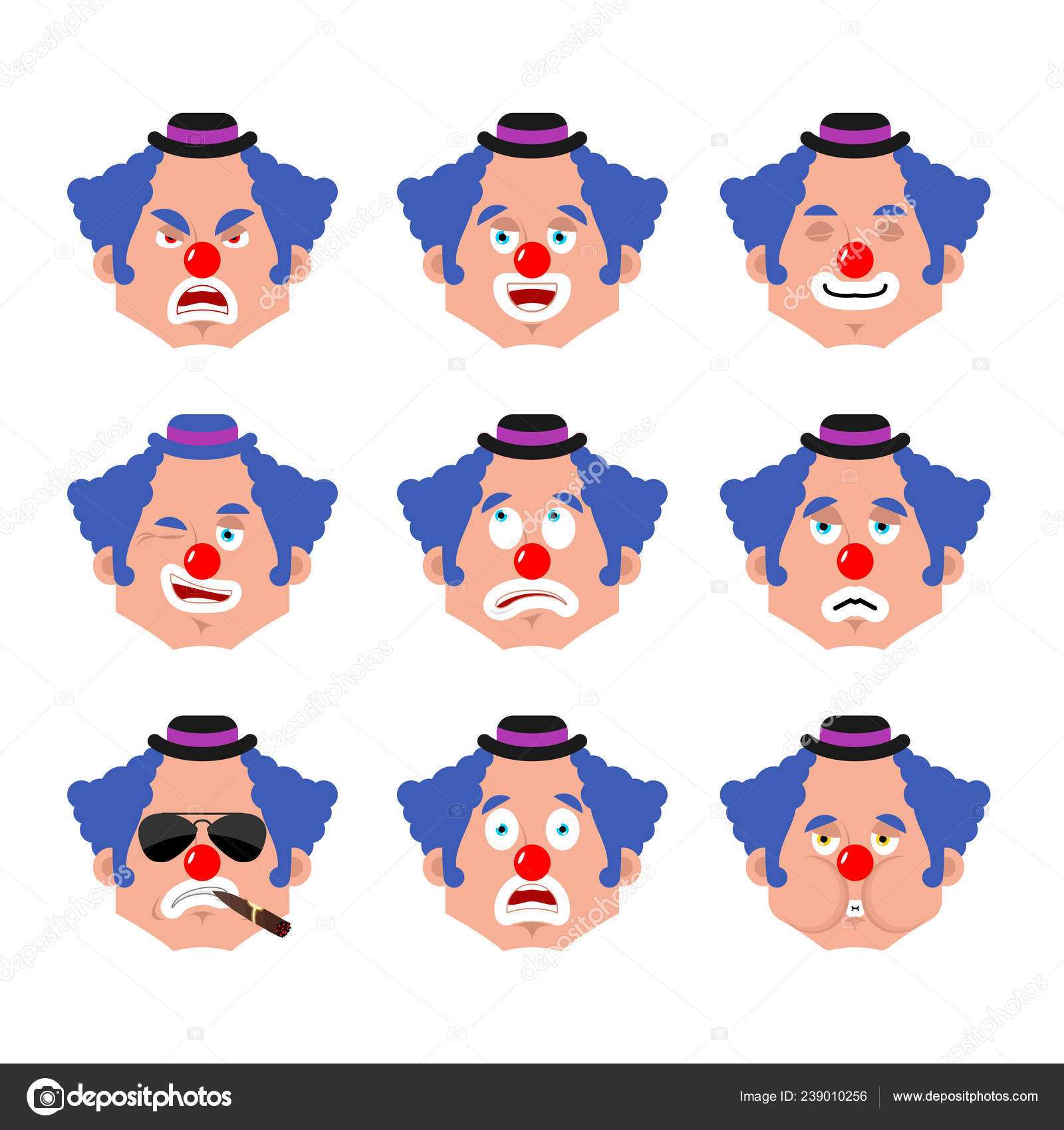 Clown Face Set Vector Illustrations Royalty Free Cliparts Vectors
