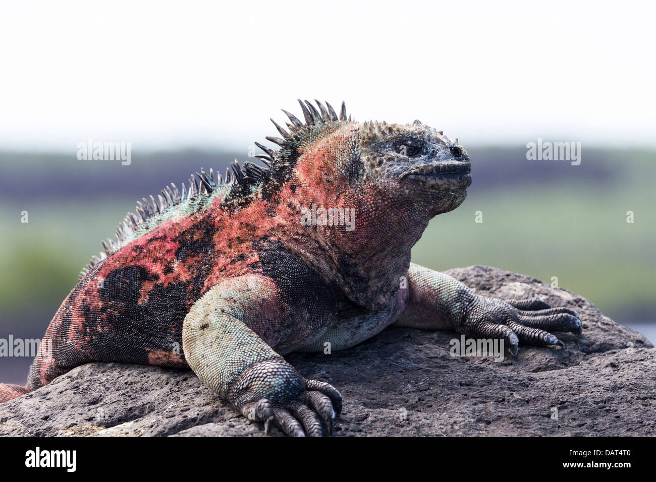 Cierrese Para Arriba De Una Iguana Marina Coloreada Roja En El