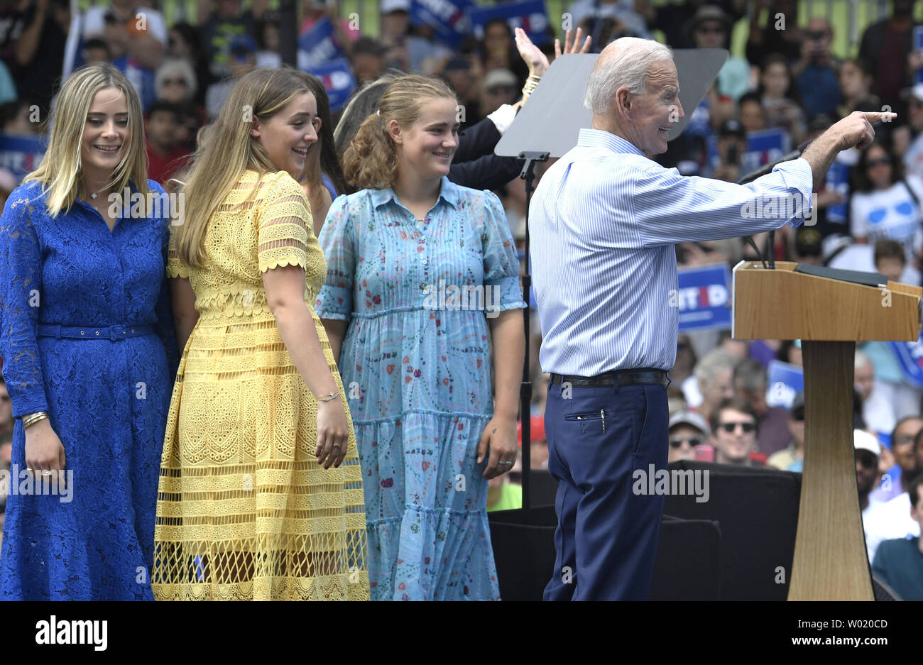 Former Vice President Joe Biden R Gestures As He Is Joined By