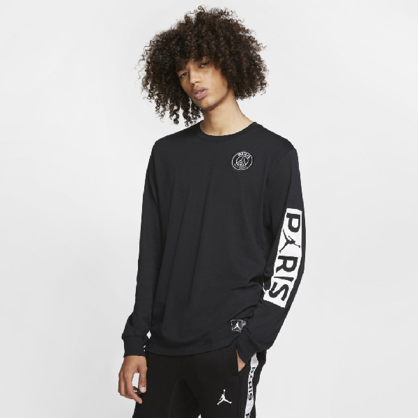 Jordan Paris Saint Germain Long Sleeve T Shirt In Black Modesens