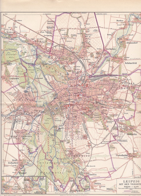 1895 City Map Of Leipzig With Its Suburbs Saxony Germany At Etsy