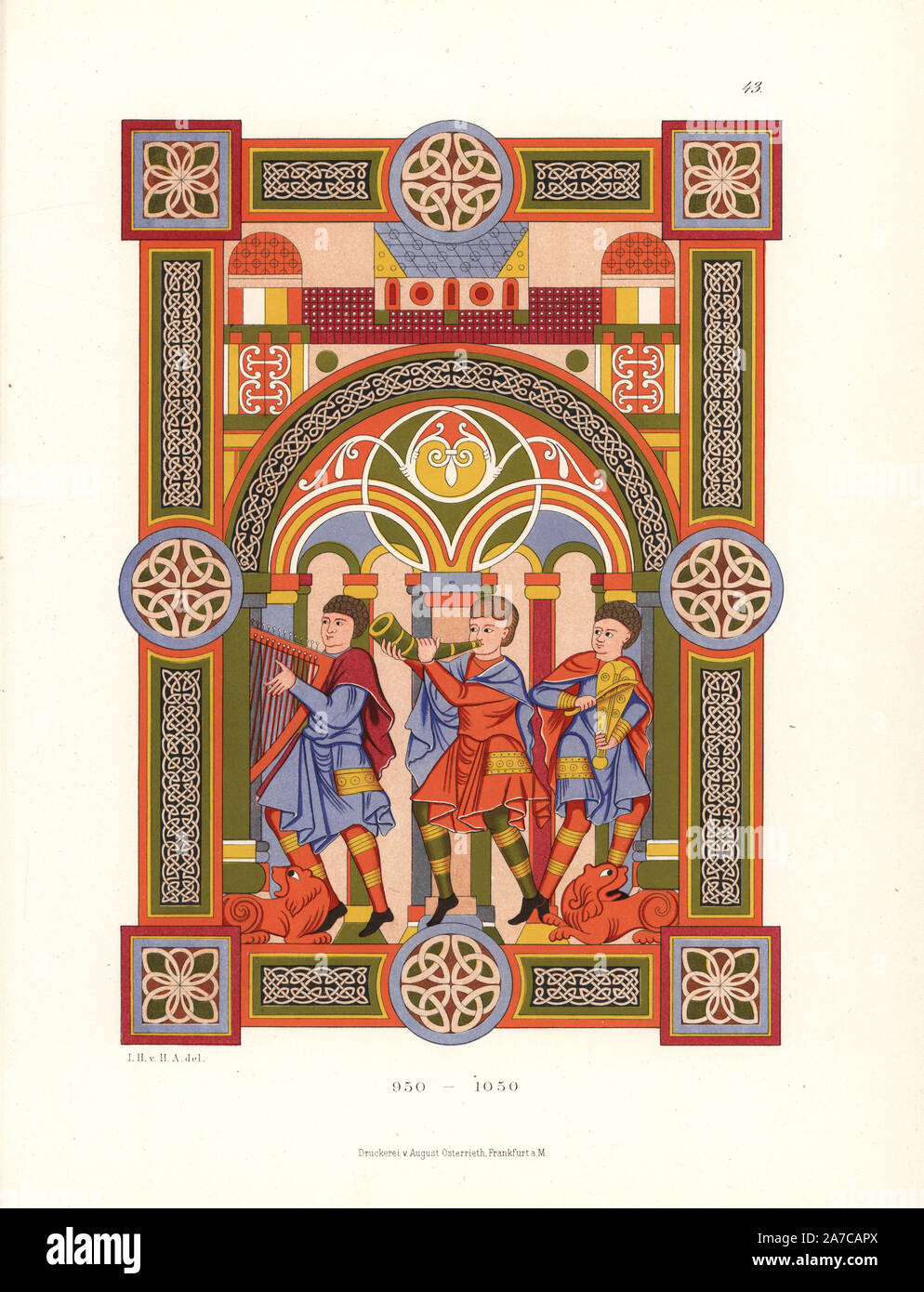 Illuminated Figures From The Psalms Of David From A Parchment Manuscript In Leipzig University Library Chromolithograph From Hefner Alteneck S Costumes Artworks