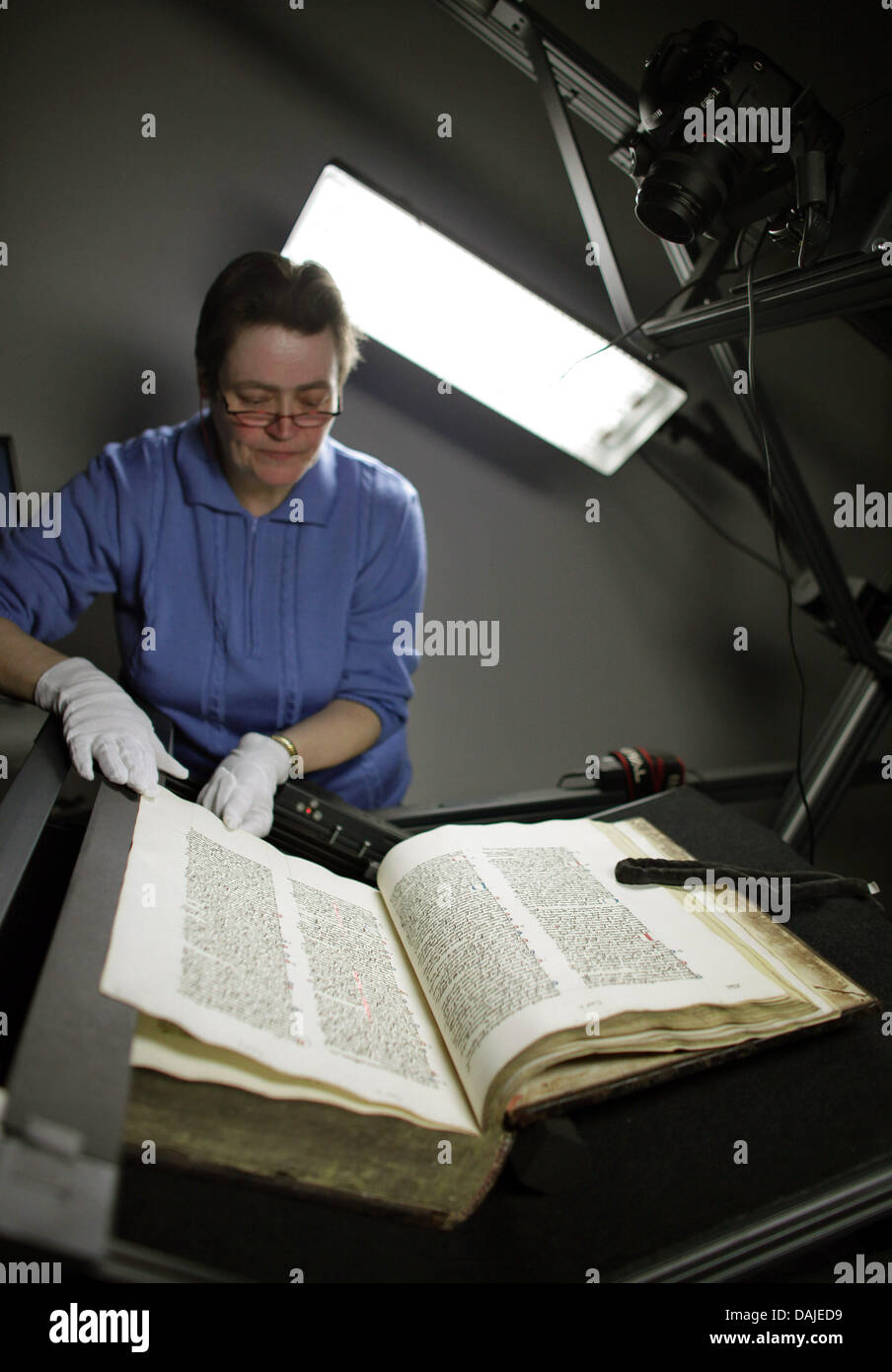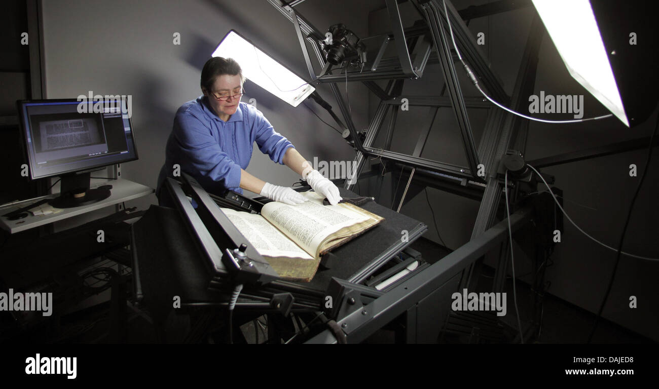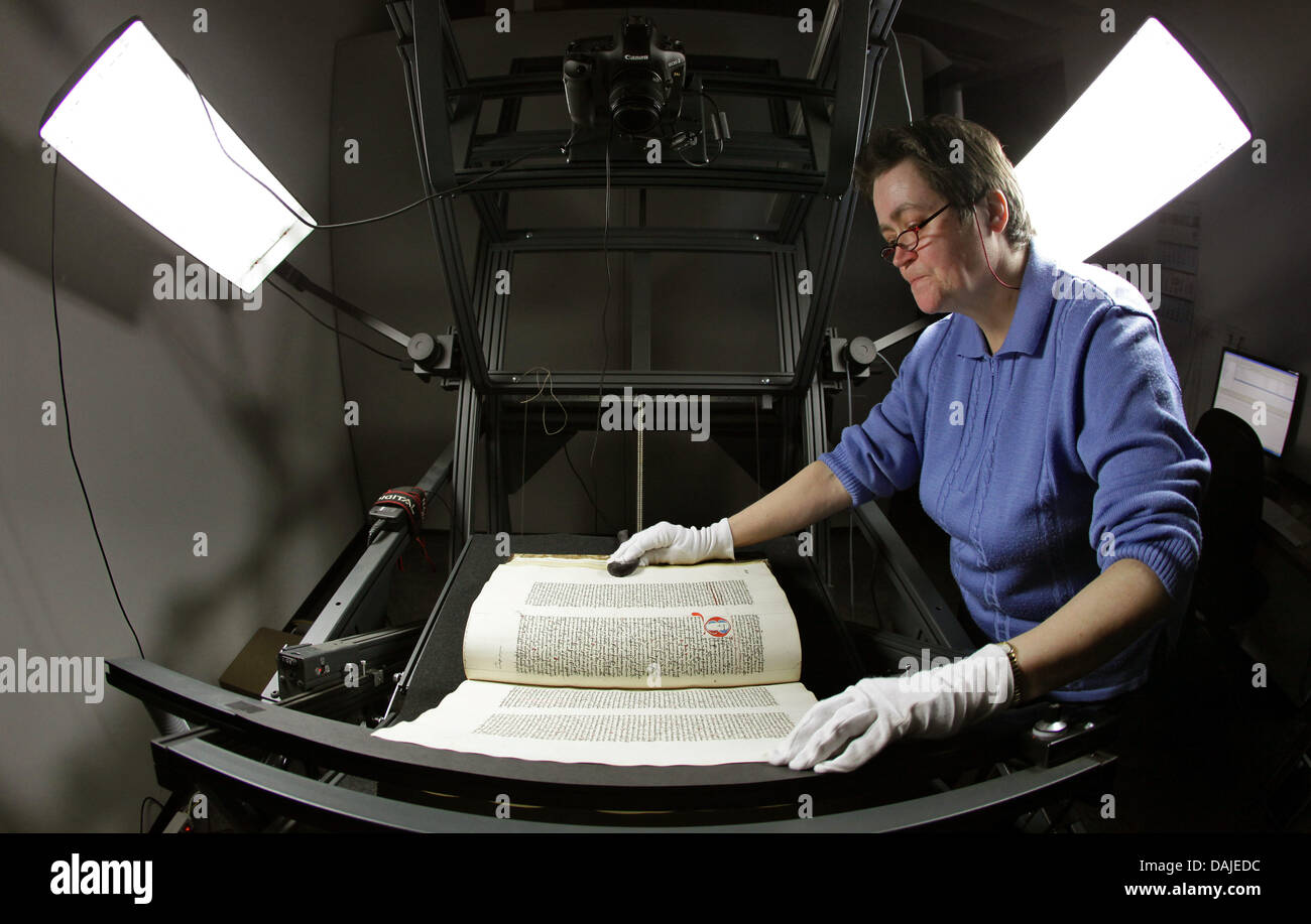 Librarian Ingrid Graf Scans An Old Handwritten Manuscripts From The Stock Photo 58184149 Alamy