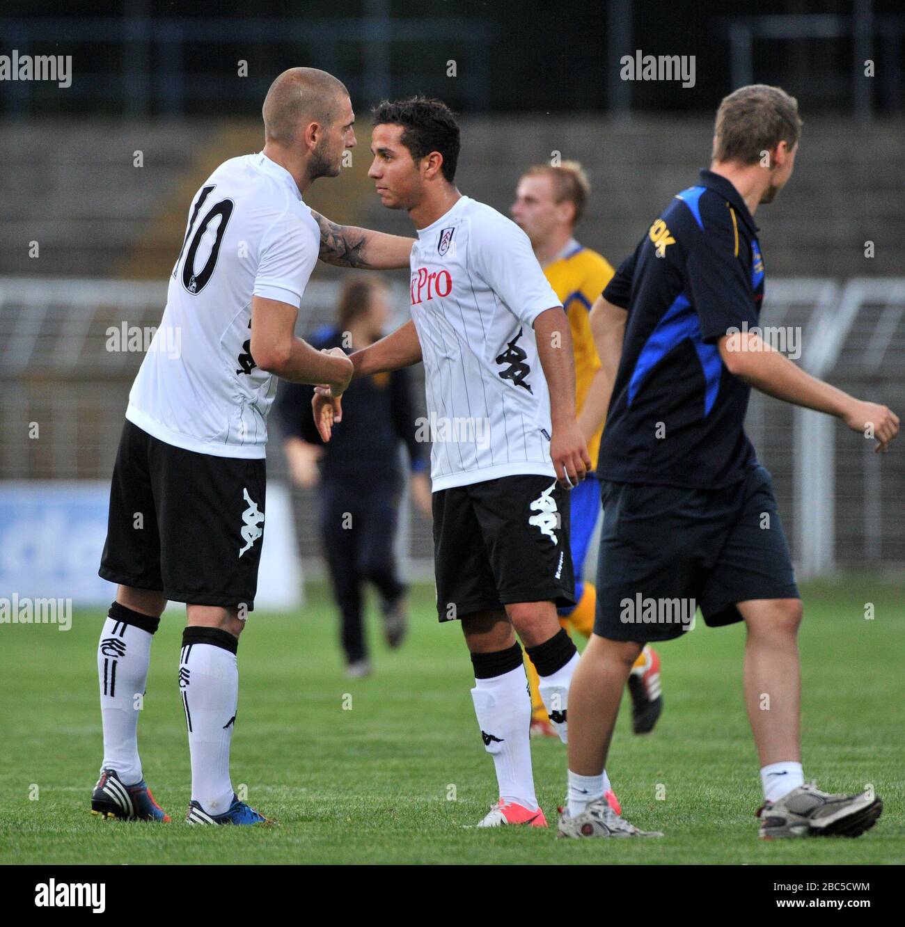 Fulham S Mladen Petric L Celebrates With Kerim Frei After The Friendly Soccer Match Lok Leipzig Vs Fulham At Bruno Plache Stadium In Leipzig Germany Stock Photo Alamy