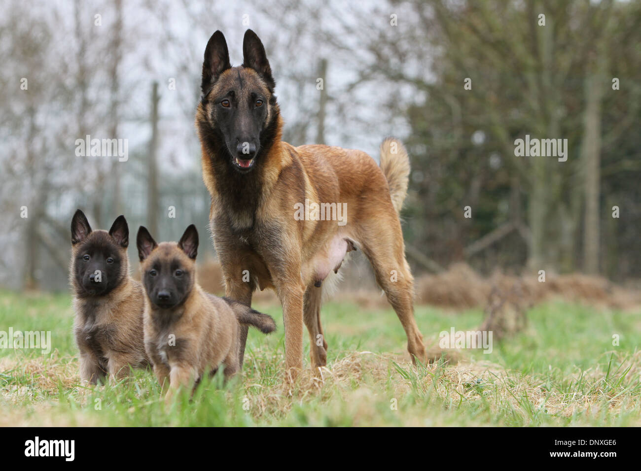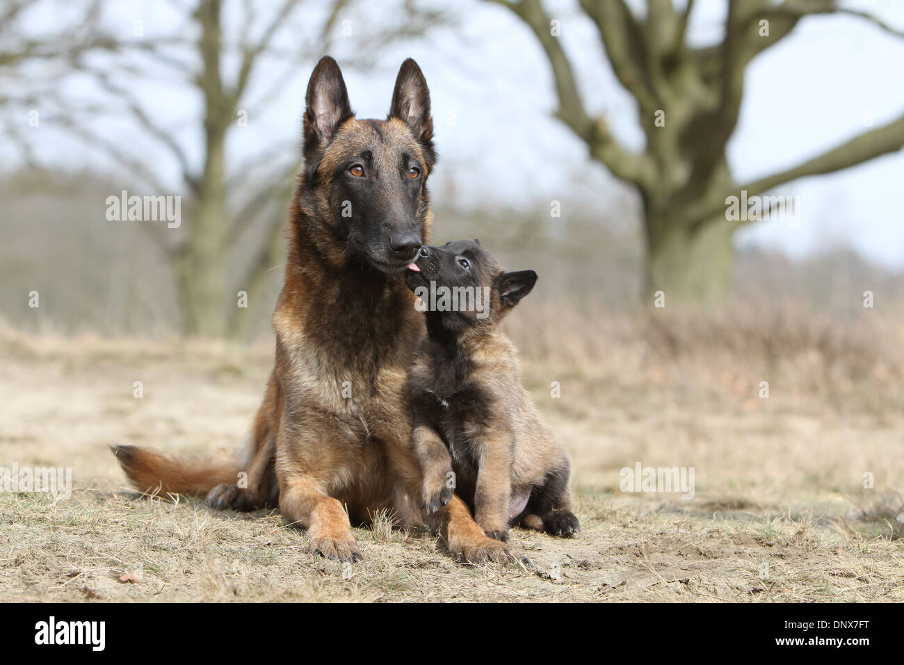 Dog Belgian Shepherd Malinois Adult And Puppy Stock Photo Alamy