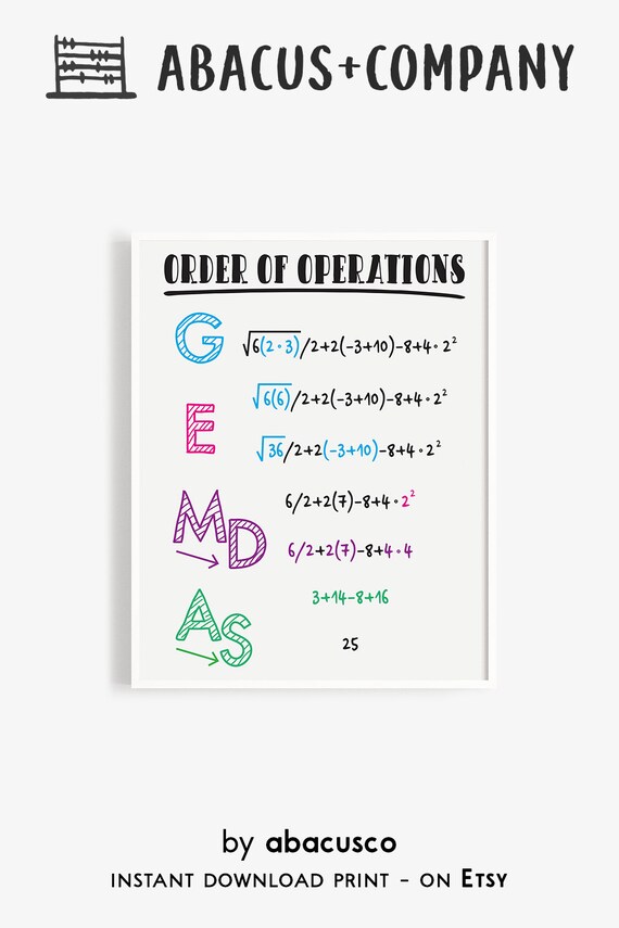 Order Of Operations Math Classroom Decorative Poster Perfect Etsy