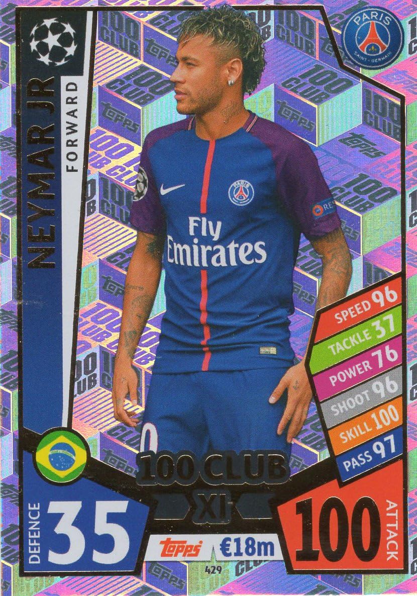 Amazon Com Match Attax Champions League 17 18 Neymar Jr 100 Club Trading Card Psg Paris St Germain 17 18 Toys Games