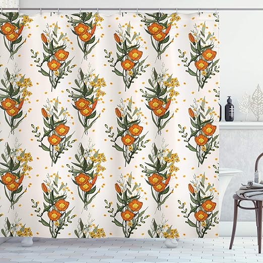 Amazon Com Ambesonne Hawaii Shower Curtain Vintage Tropic Flower Leaves California Poppy Cloth Fabric Bathroom