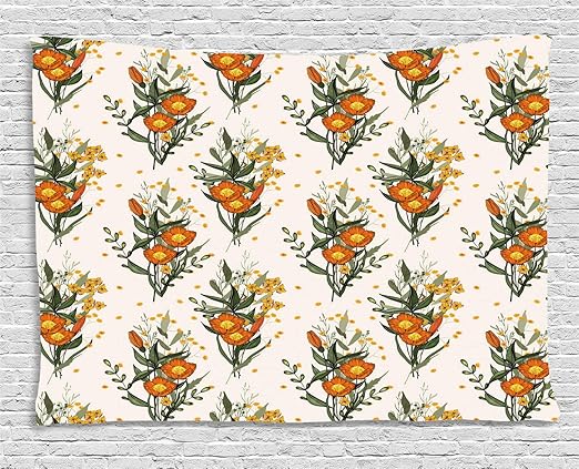 Amazon Com Ambesonne Hawaii Tapestry Vintage Tropic Flower Leaves California Poppy Wide Wall Hanging For Bedroom