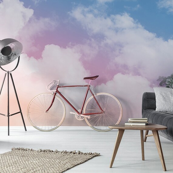 Abstract Pink Blue Clouds Blue Sky Wallpaper Wall Mural Hand Etsy