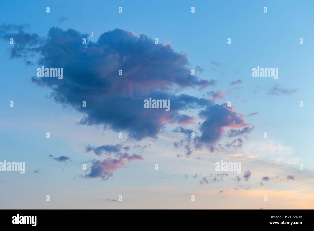 Sky With Clouds In Blue And Pink Sunset Evening Colors License