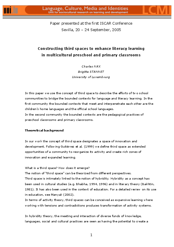Pdf Constructing Third Spaces To Enhance Literacy Learning In