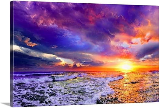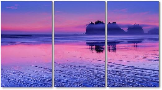 Amazon Com Burgessalbert Usa Washington Pacific Ocean Sea Water Pink Sunset Clouds Blue 3 Panels Wall Art Canvas Stretched With Wooden Frame For Home Decor Ready To Hang 20x28 Inches X