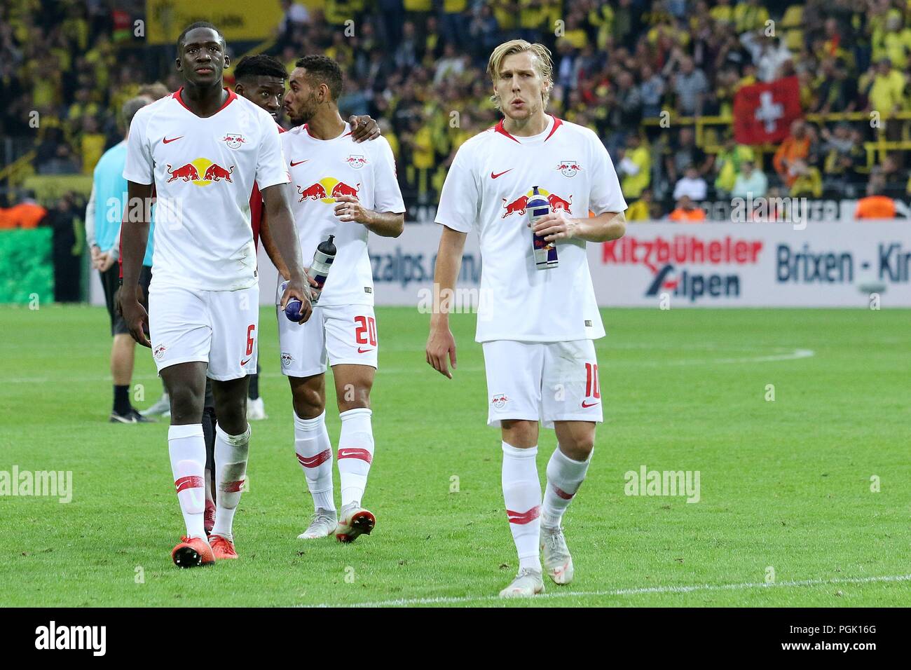 Dortmund Germany 26 August 2018 1 Bl 18 19 Borussia Dortmund Vs Rb Leipzig V Li Ibrahima Konate Leipzig And Matheus Cunha Leipzig And Emil Forsberg Leipzig Mimic Strong Facial Expression Emotion Dissatisfied Disappointed Disappointed