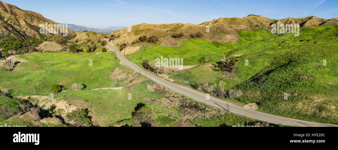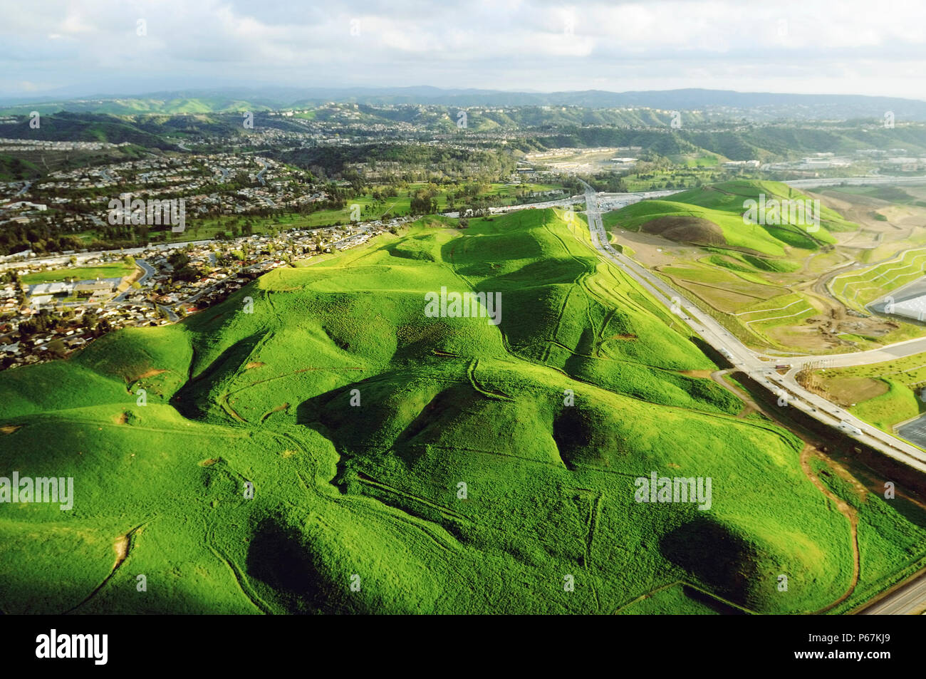 Aerial Shot Of Rolling Green Hills Southern California Shot With