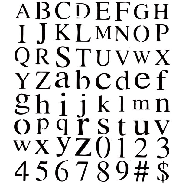 Self Adhesive Airbrush Tattoo Stencil Set Upper Lower Times Roman