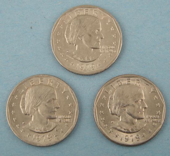 3 Diff Fill Error 1979 Susan B Anthony Dollars P D S