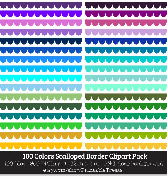 Scalloped Border Clipart Pack 100 Colors Printable Large Etsy