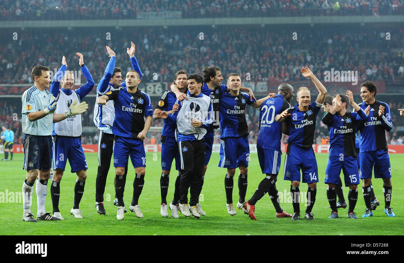 Hamburg S Players Celebrate Winning Uefa Europa League Quarter