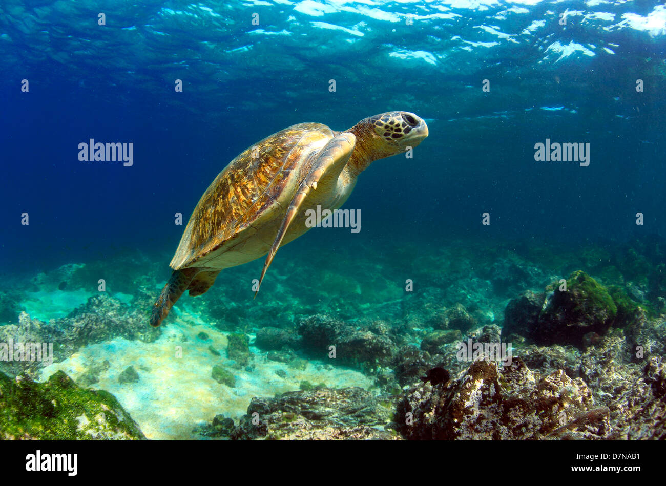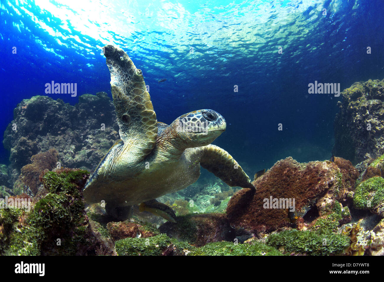 Green Sea Turtle Underwater Galapagos Islands Stock Photo