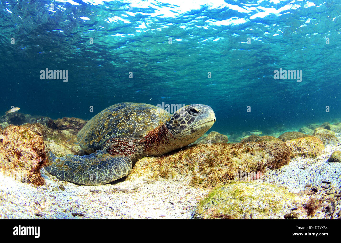 Closeup Of Green Sea Turtle At Wolf Island Galapagos Stock Photo