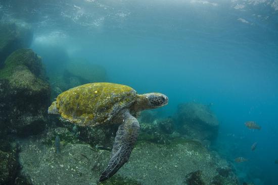 Pacific Green Sea Turtle Chelonia Mydas Underwater On Fernandina