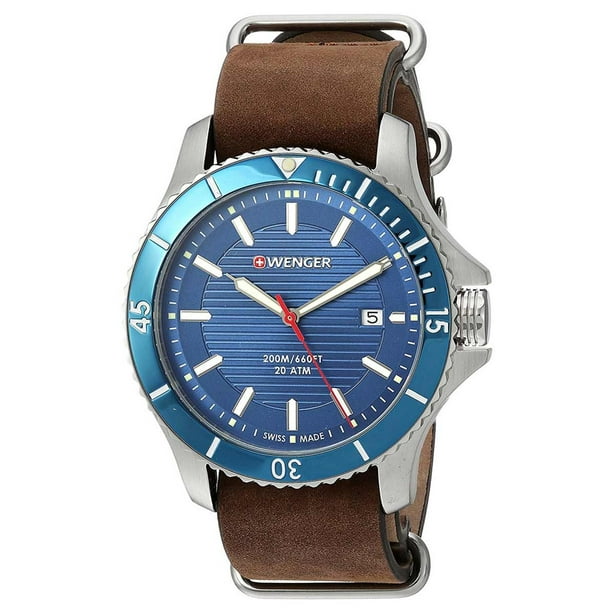 Wenger Wenger Men S 01 0641 121 Seaforce Blue Dial Brown Leather
