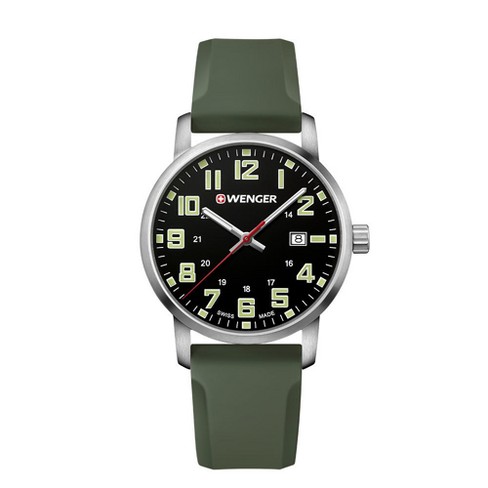 Men S Wenger Avenue Swiss Made Black Dial Silicone Strap Watch
