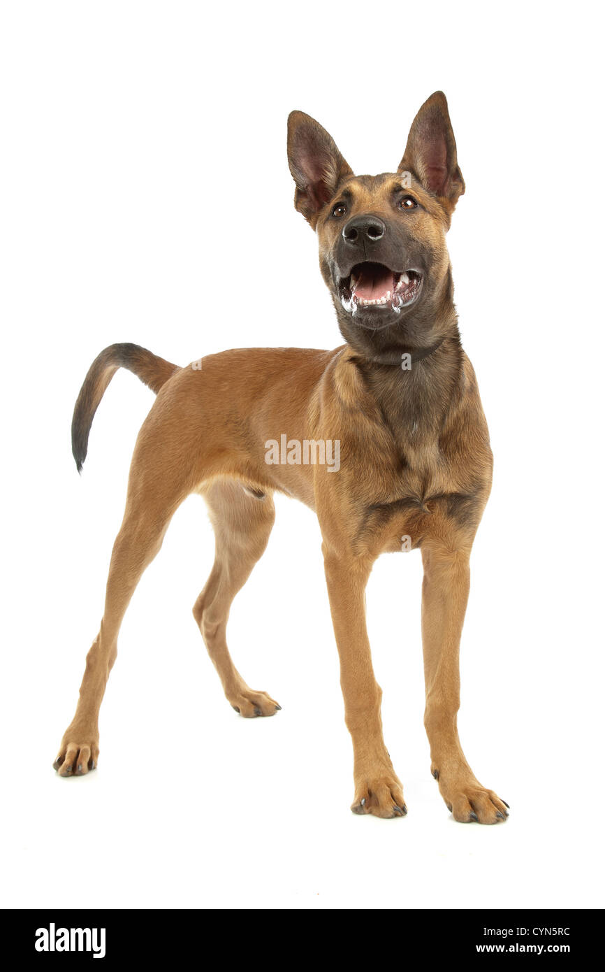 Black Belgian Shepherd Dog Malinois On A White Background Stock